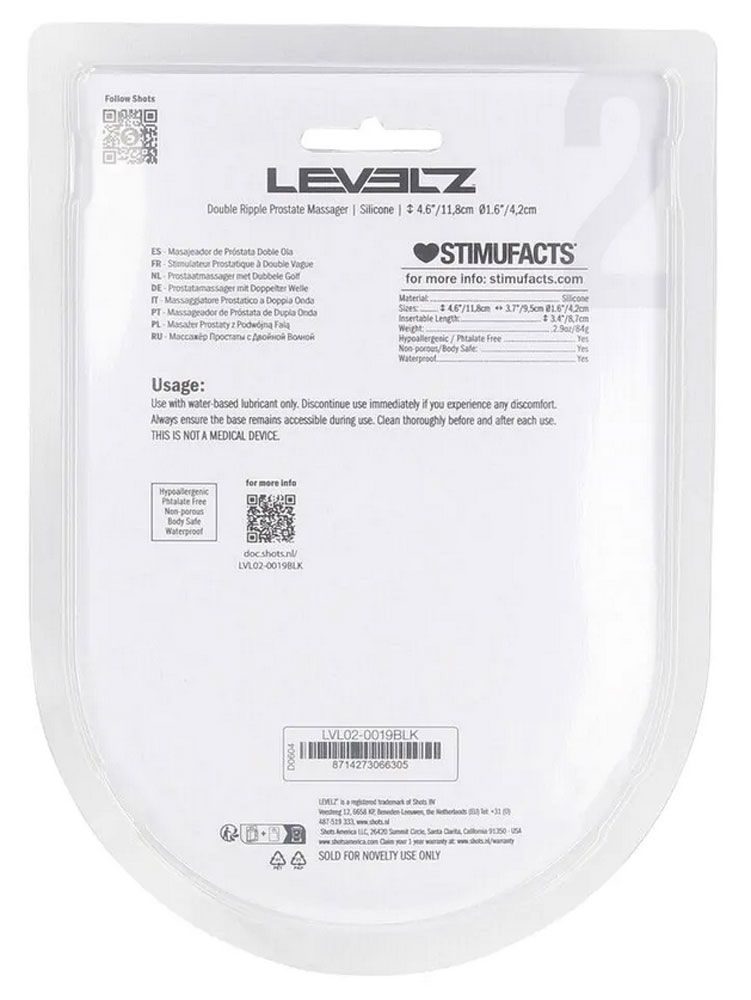 Черная анальная пробка для массажа простаты Double Ripple Silicone Prostate Massager. Рабочая длина - 8,7 см.