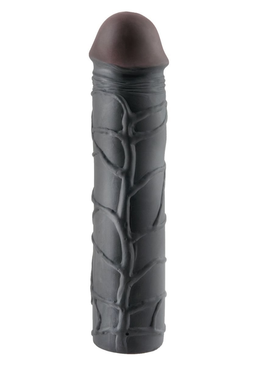 Удлинняющая насадка в виде члена, изготовленная из ТПЕ. Приятная на ощупь, легко растягивается до нужного диаметра. Имеет ярковыраженную головку и прорисованные вены. Удлиняет член на 9 см. Минимальный внутренний диаметр - 3,2 см.
