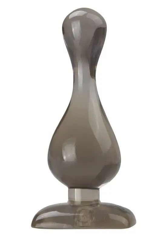 Дымчатый анальный плаг каплевидной формы. Гладкий кончик облегчает ввод. Широкое ограничительное основание не позволит протолкнуть игрушку на опасную глубину. Минимальный диаметр - 1 см. В верхней части - 2 см В нижней максимальный диаметр - 3.5 см.