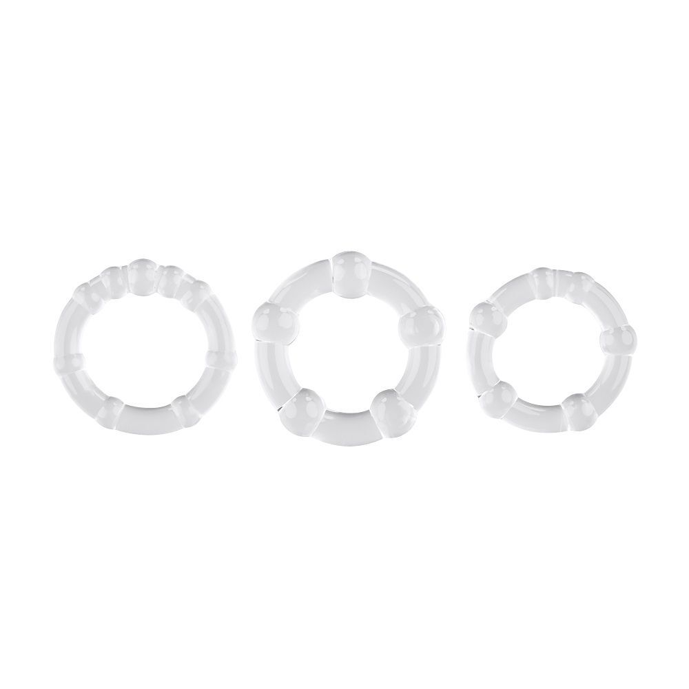 Набор Erection Rings предлагает три уровня поддержки — умеренный, плотный и интенсивный — для усиления вашей эрекции. Используйте одно сверхэластичное кольцо или все три сразу для достижения более твердой и объемной эрекции. Диаметр колец - 3,15, 3,3 и 3,43 см.