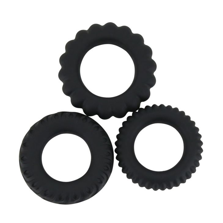 Вы можете использовать только одно кольцо, надев его на основание полового члена, либо все три одновременно, распределив их по всей длине, либо использовать одно из колец для плотного обхвата мошонки. В комплекте: