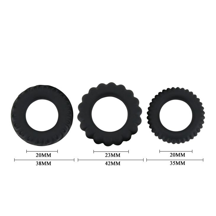 Супер эластичные кольца плотно обхватывают половой член, предотвращая отток крови, за счет этого предотвращается преждевременная эякуляция, а интимная близость длится столько времени, сколько вы хотите. Кольца имеют разный диаметр, что дает возможность выбрать наиболее подходящий размер.